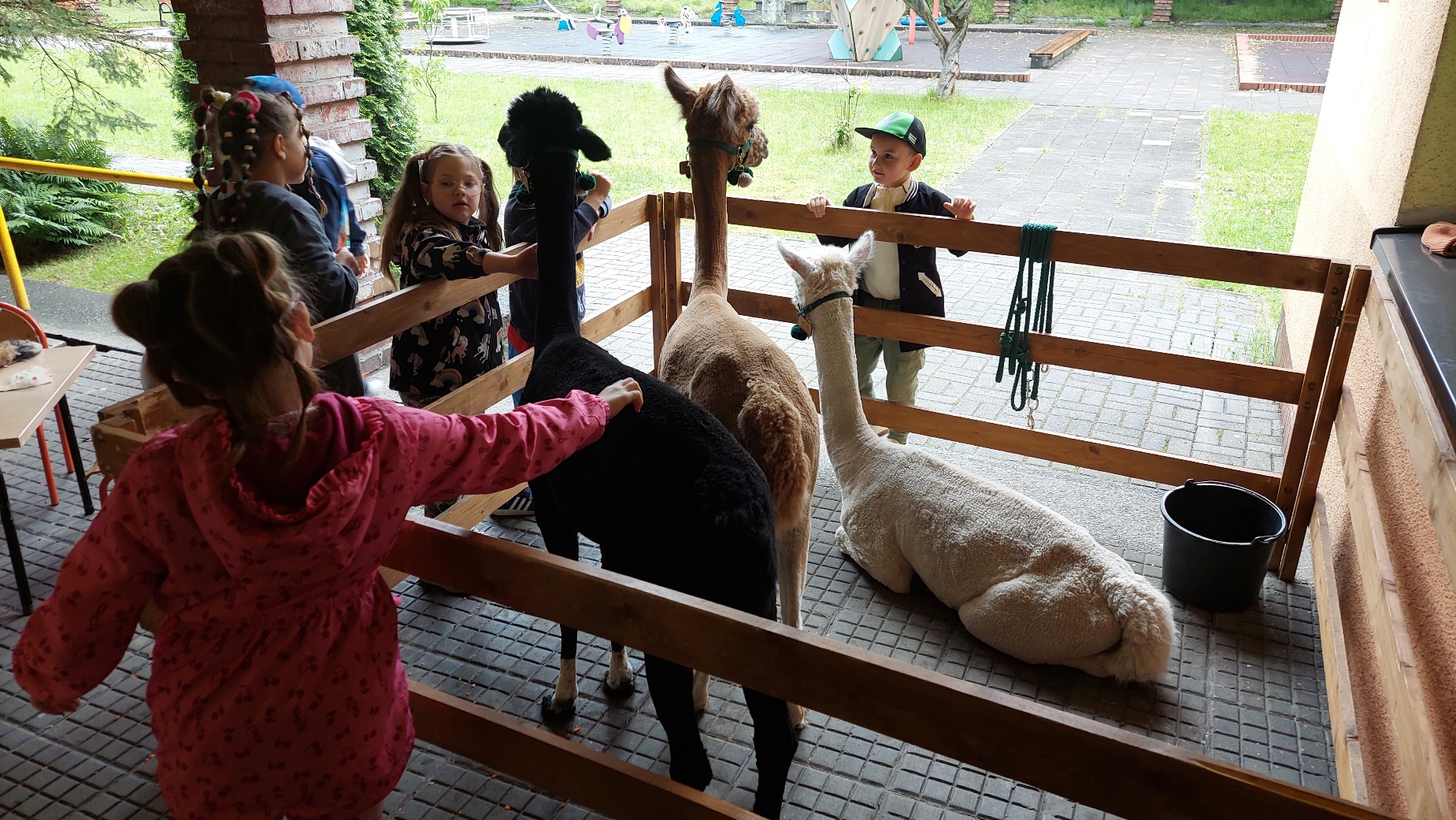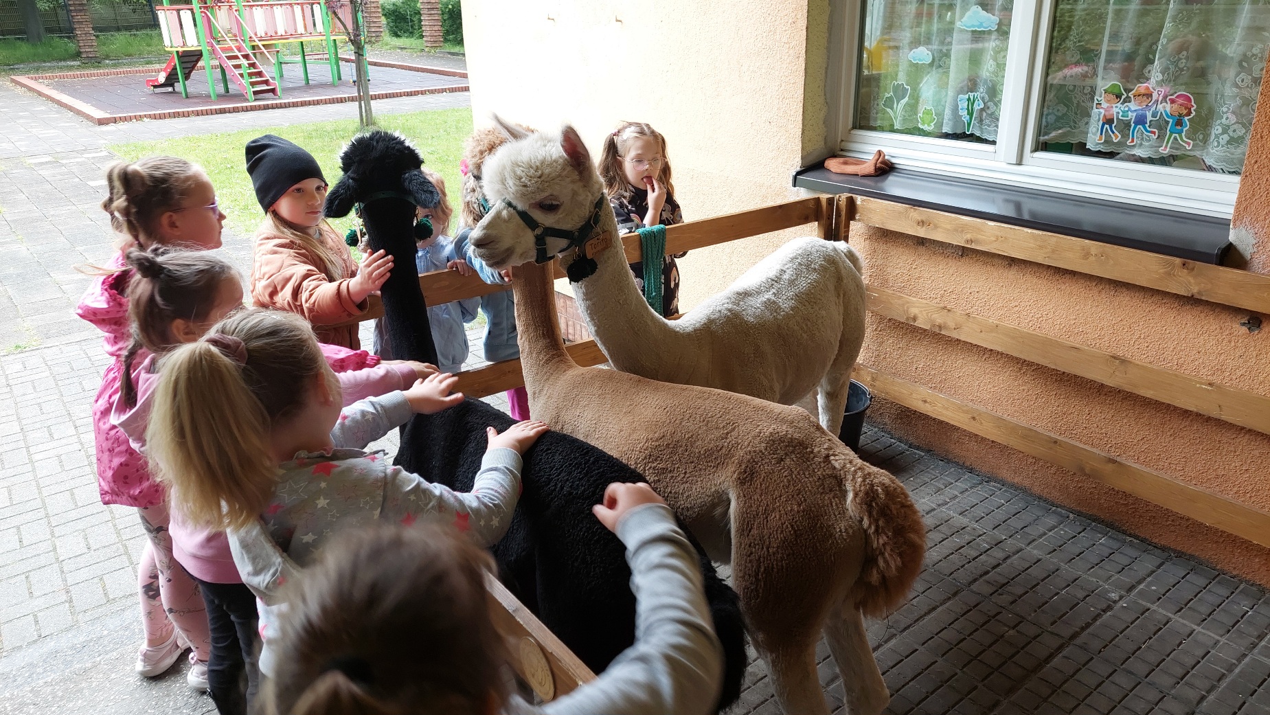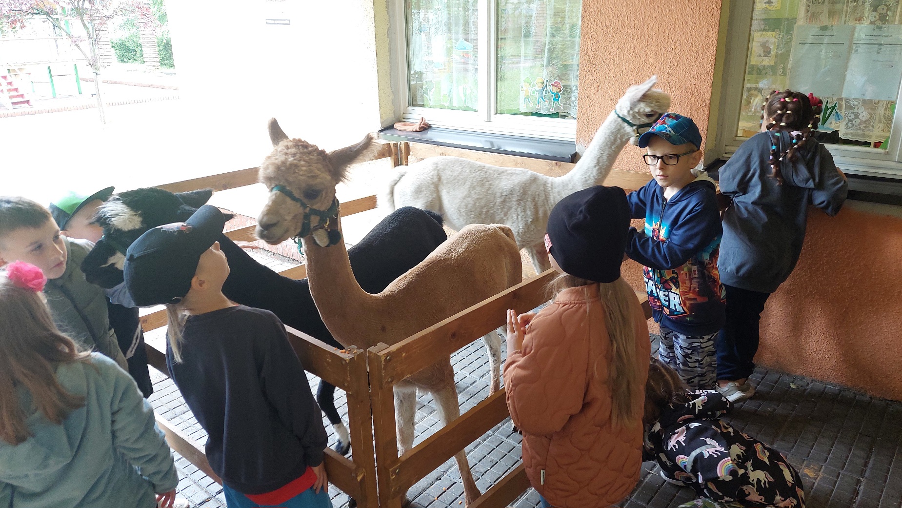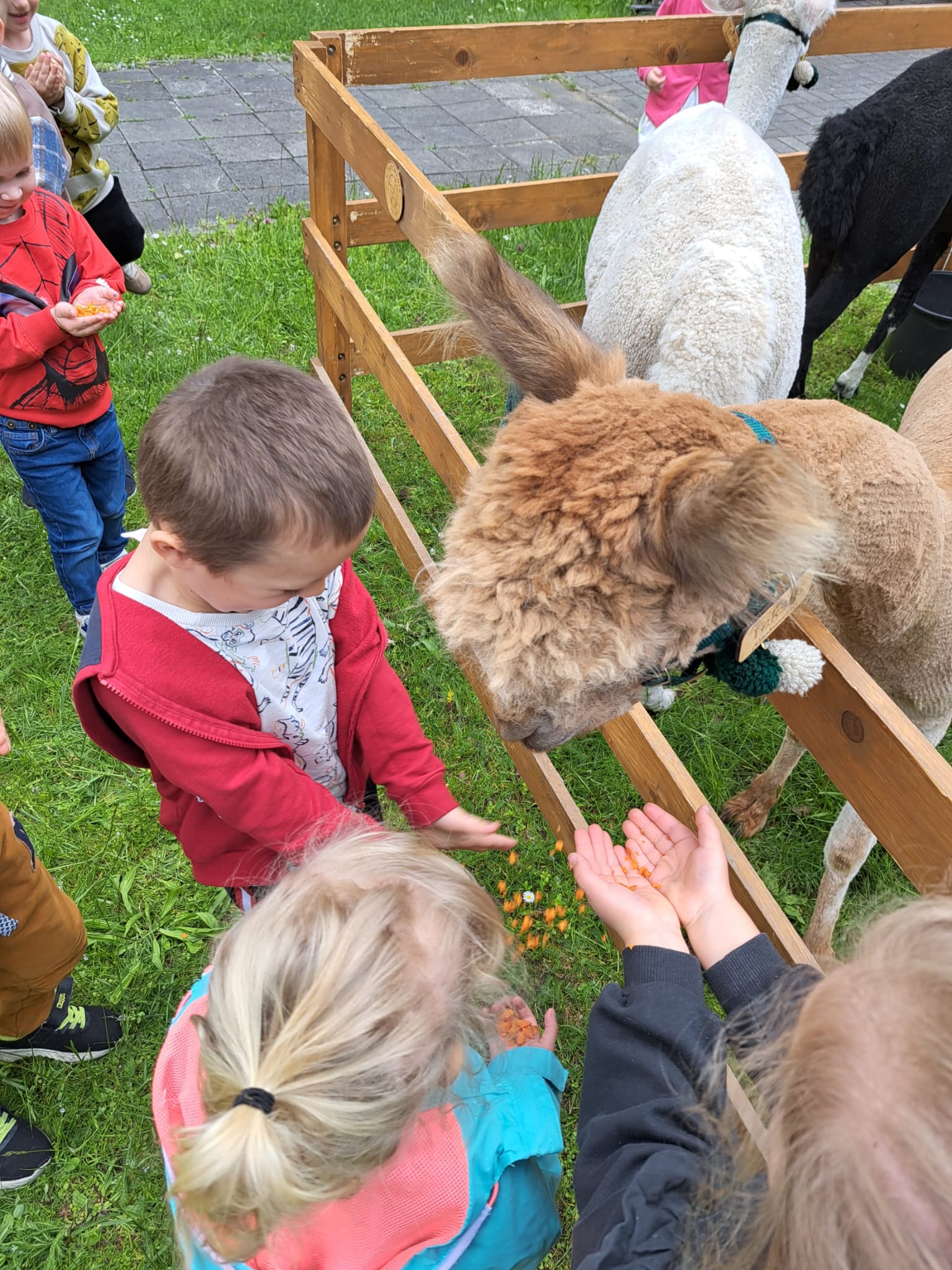 W czwartek 22 maja 2025r. wszystkie nasze dzieci uczestniczyły w spotkaniu edukacyjnym oraz warsztatach kreatywnych przy udziale trzech uroczych Alpak. Dzieci poznały ciekawostki o tych miłych zwierzątkach, mogły je pogłaskać, nakarmić, a na koniec otrzymały drewniane sylwety, które wyklejały runem alpaczym.