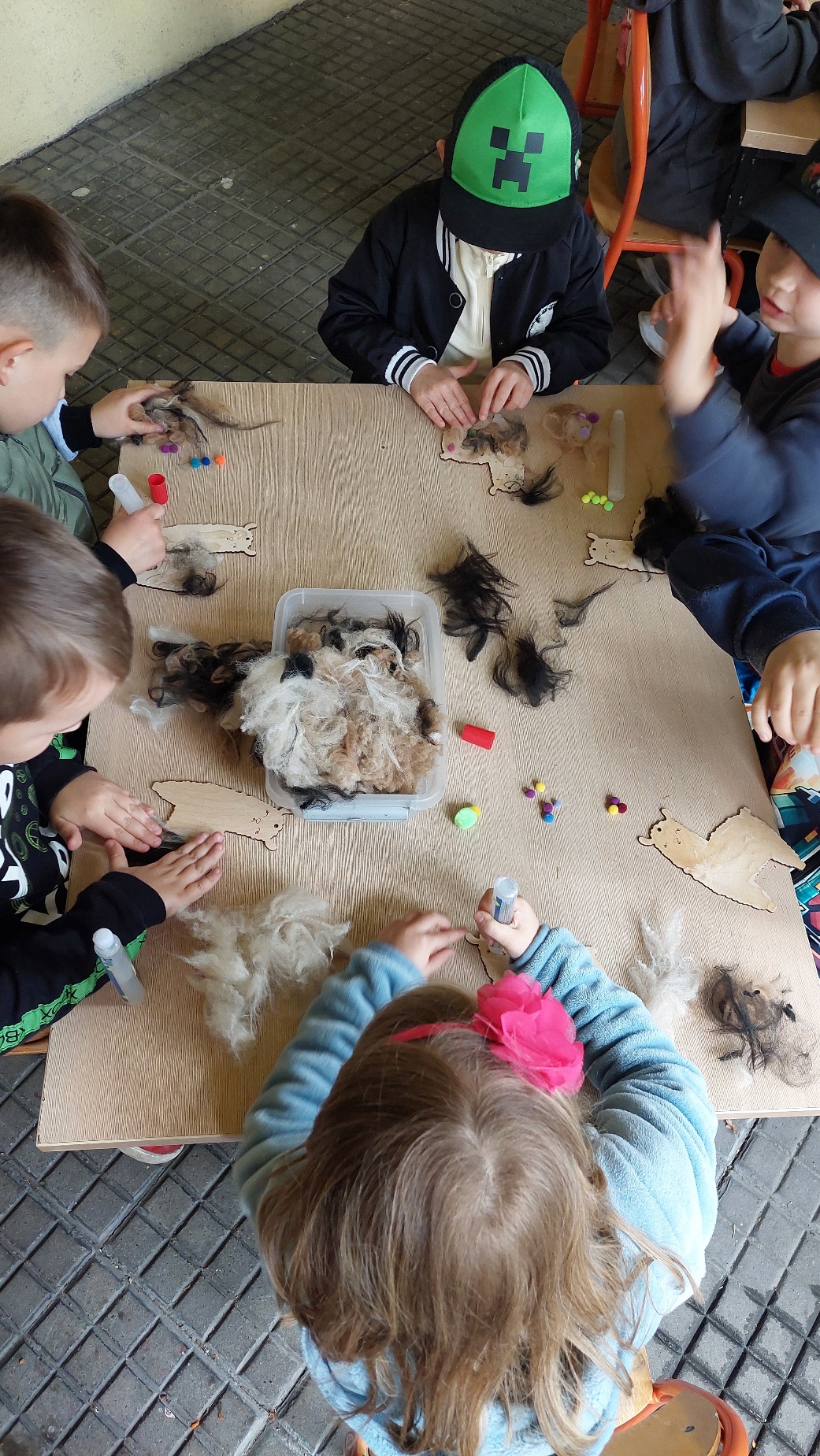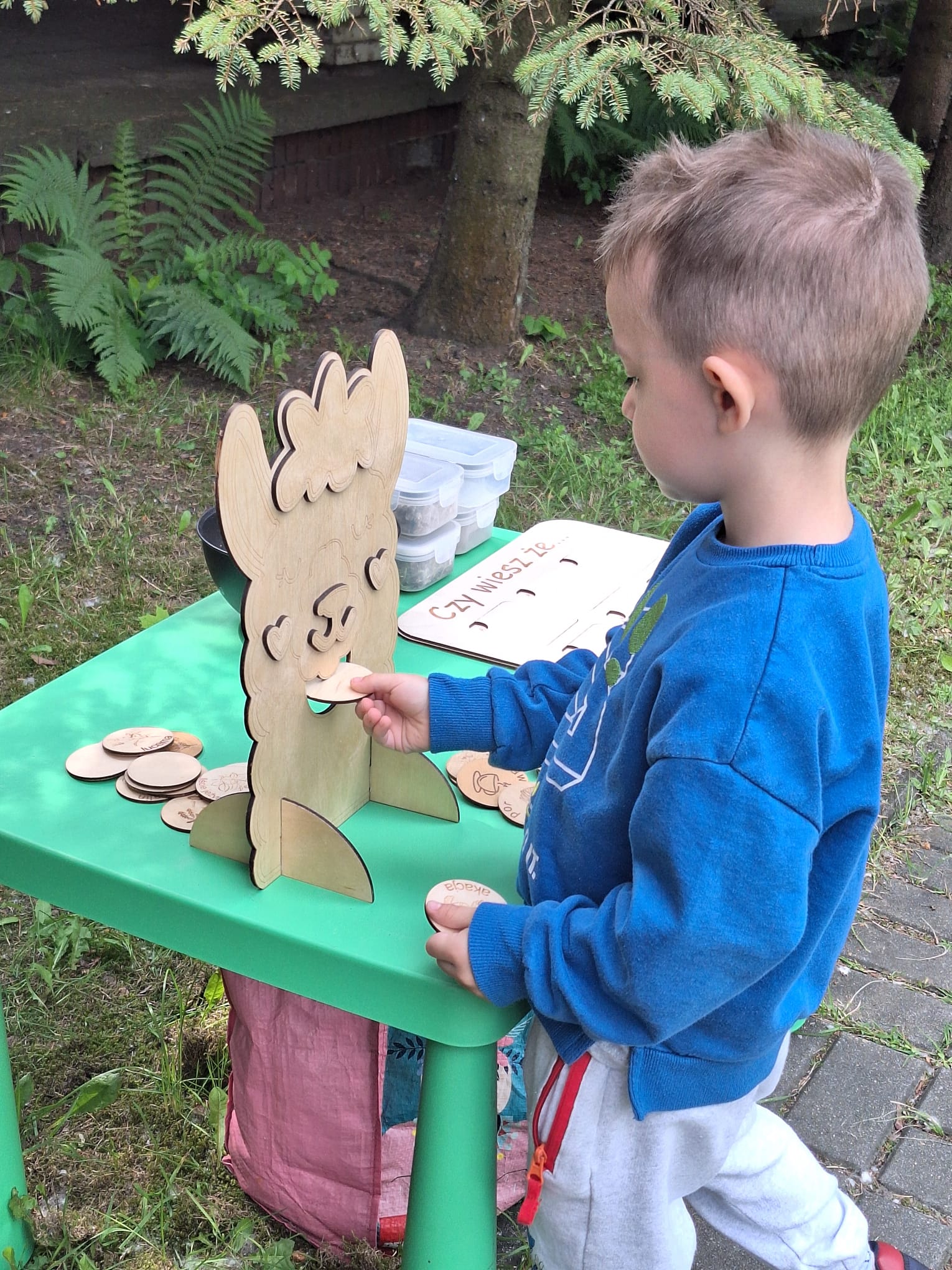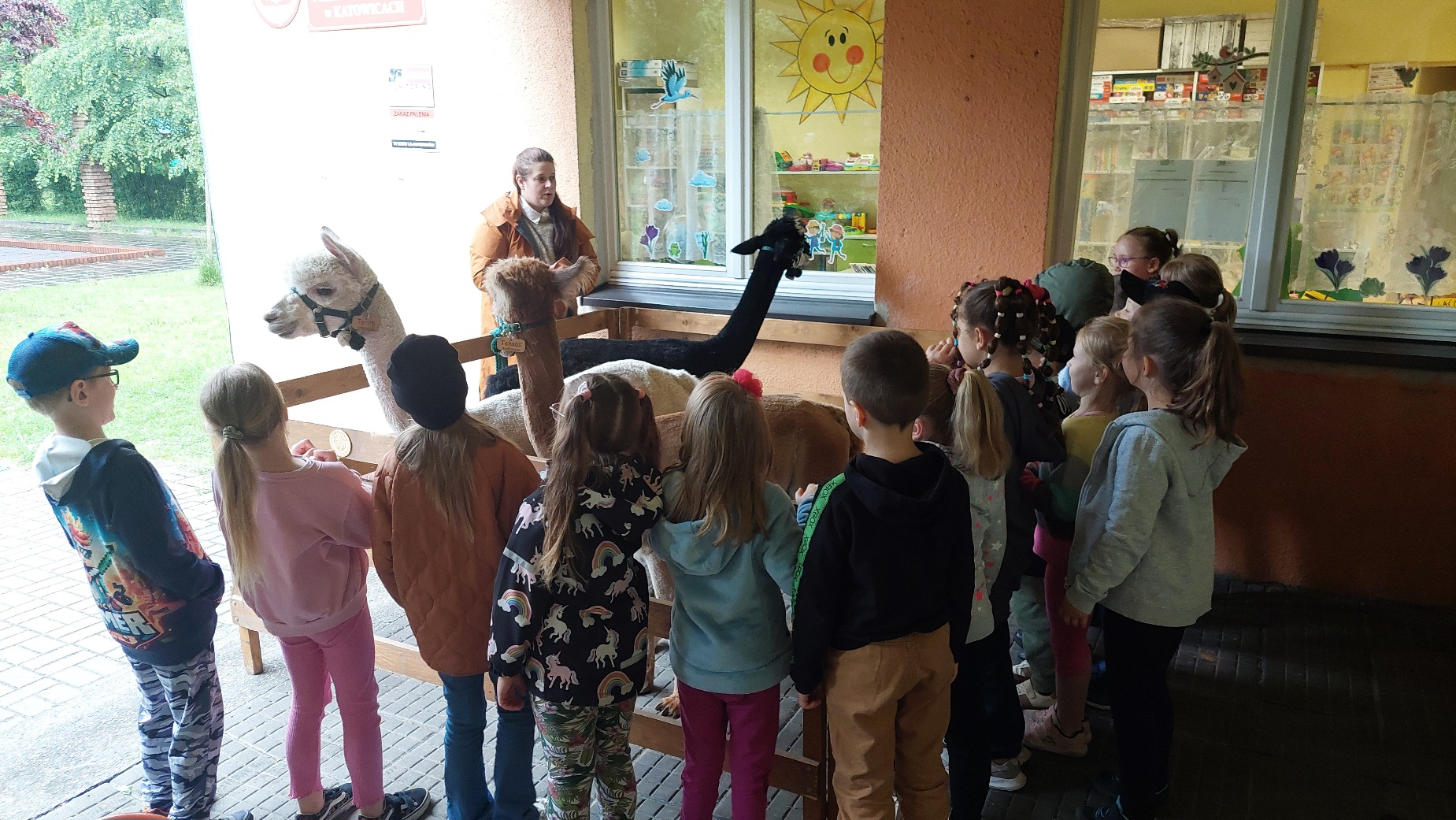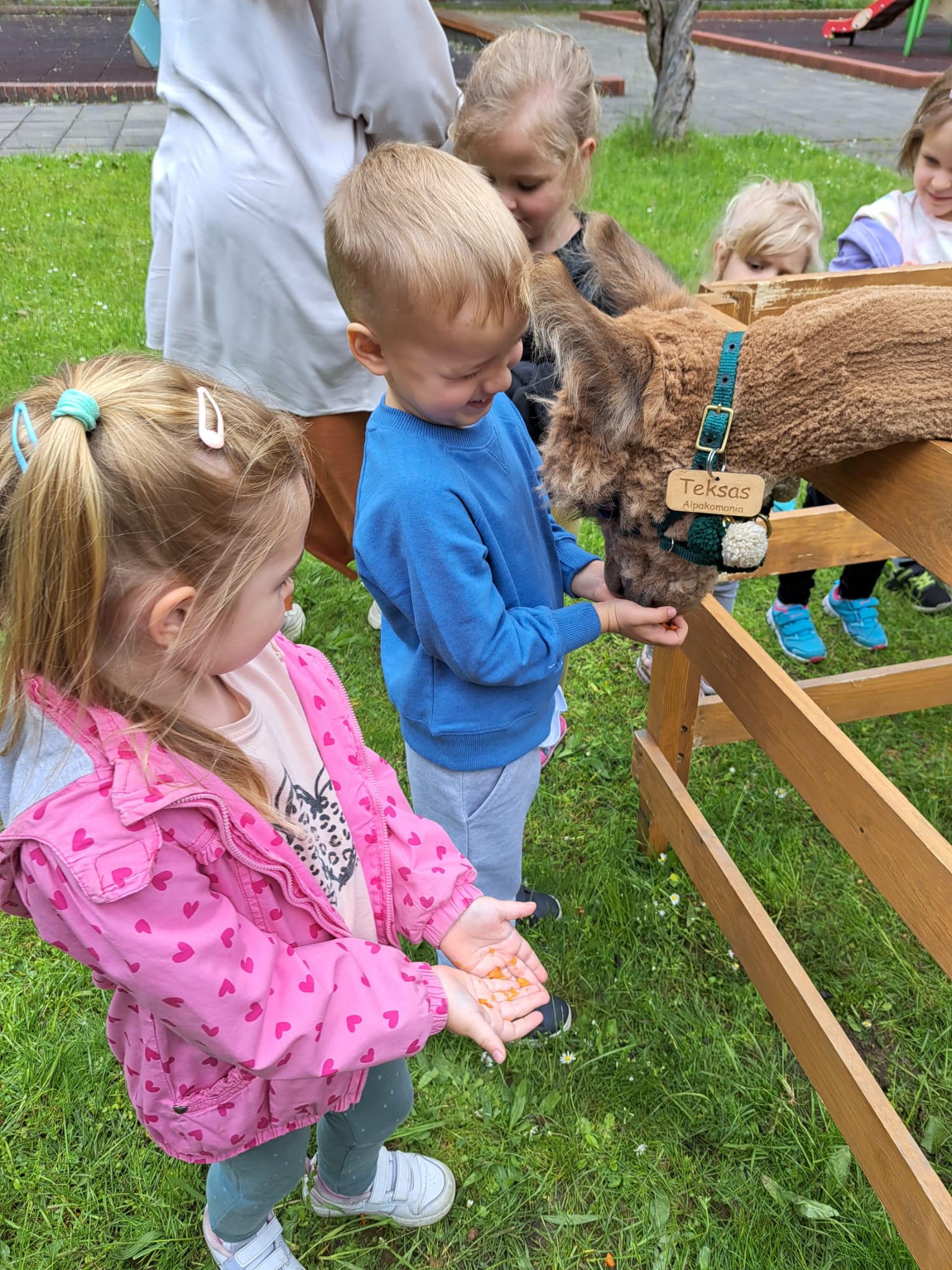 W czwartek 22 maja 2025r. wszystkie nasze dzieci uczestniczyły w spotkaniu edukacyjnym oraz warsztatach kreatywnych przy udziale trzech uroczych Alpak. Dzieci poznały ciekawostki o tych miłych zwierzątkach, mogły je pogłaskać, nakarmić, a na koniec otrzymały drewniane sylwety, które wyklejały runem alpaczym.