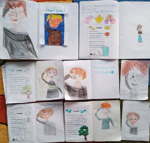 Uczniowie w swoich Lekturnikach zaprojektowali okładki, podpisali się i uzupełnili strony związane z czytaną lekturą, czytali sobie nawzajem kolejne rozdziały, pogłębiali wiedzę na temat Marii Curie-Skłodowskiej oraz Warszawy w XIX w. i życia w czasach I wojny światowej.
