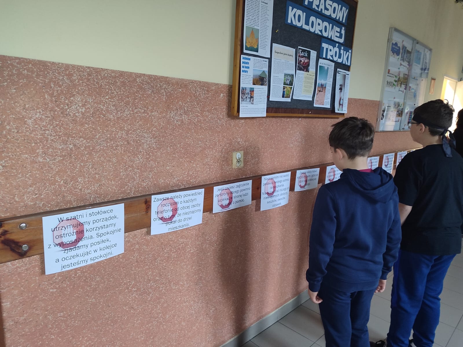 a następnie wspólnie je omawiali. Szczególną uwagę zwrócono na to, jak rozpoznawać niebezpieczne sytuacje, jak na nie reagować oraz gdzie szukać pomocy. Uczniowie poznali również zasady bezpiecznego zachowania oraz dowiedzieli się, jak dbać o własne bezpieczeństwo i wspierać innych w trudnych sytuacjach.