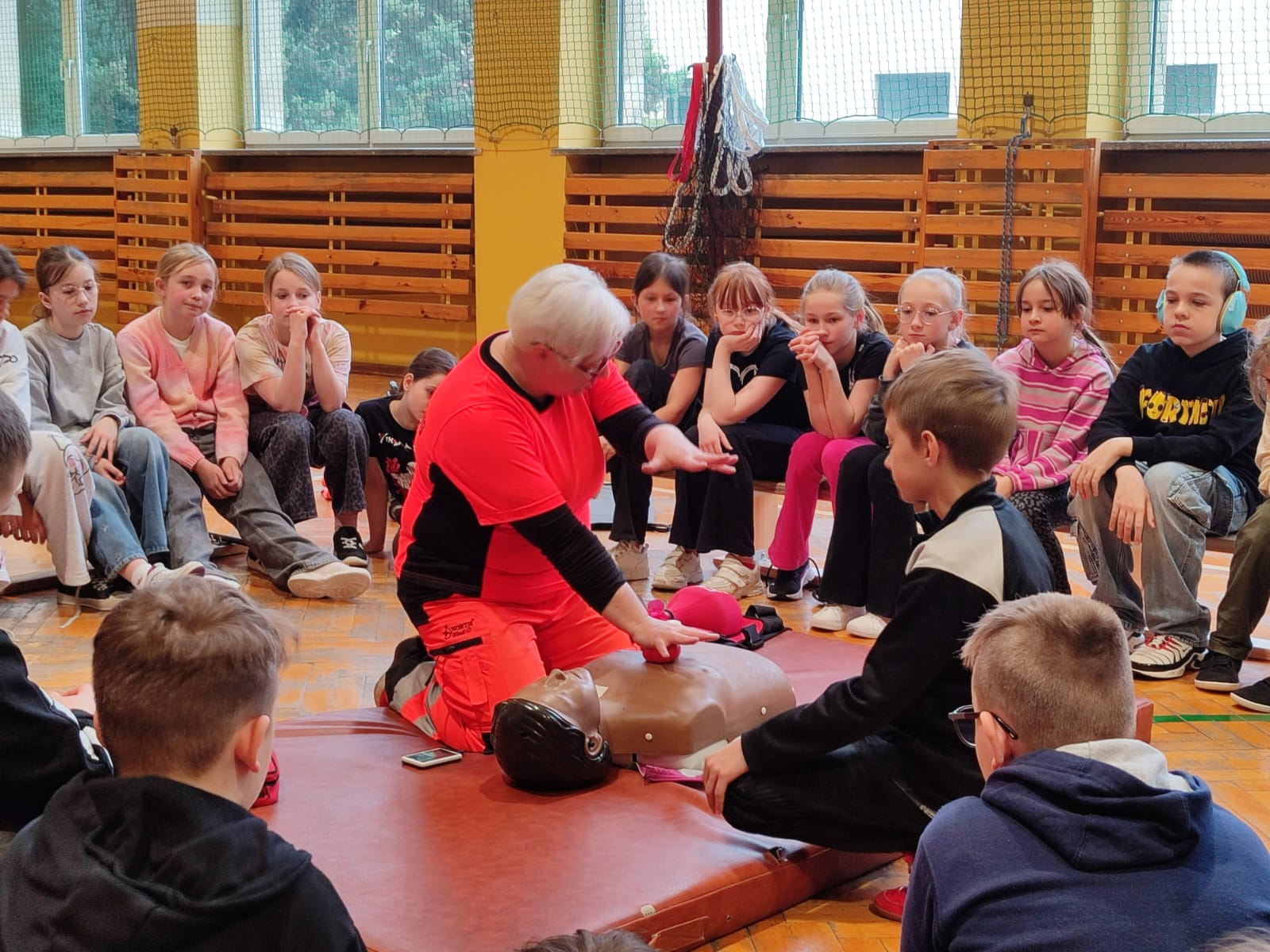 na fantomie tematykę udzielania pierwszej pomocy.