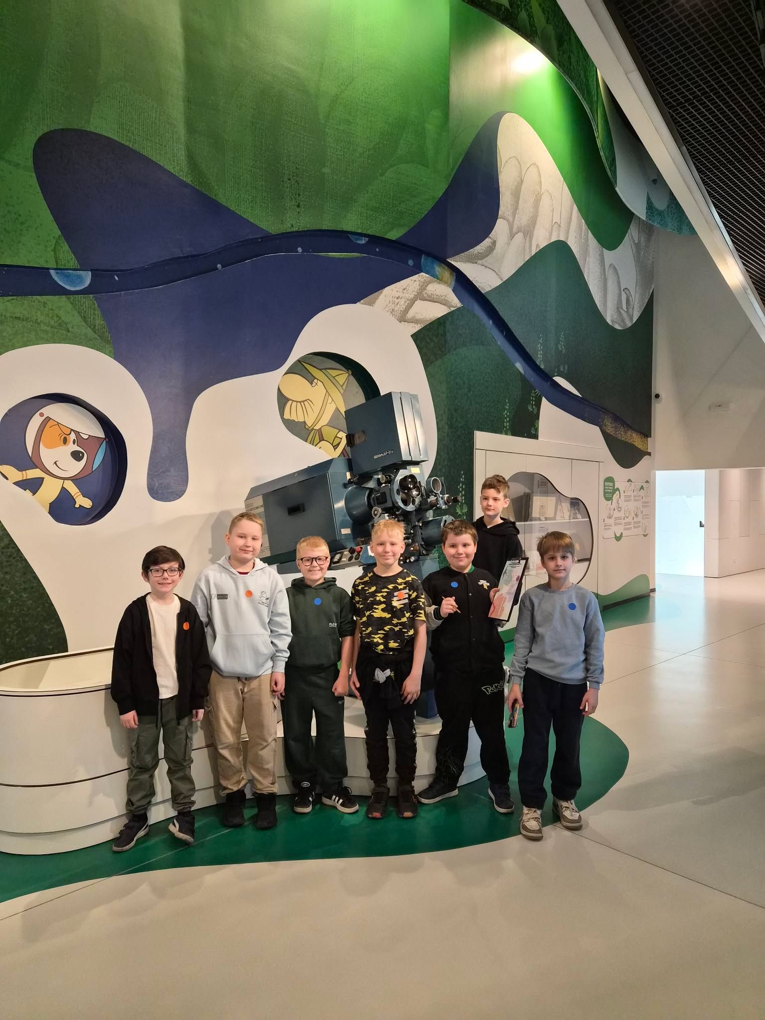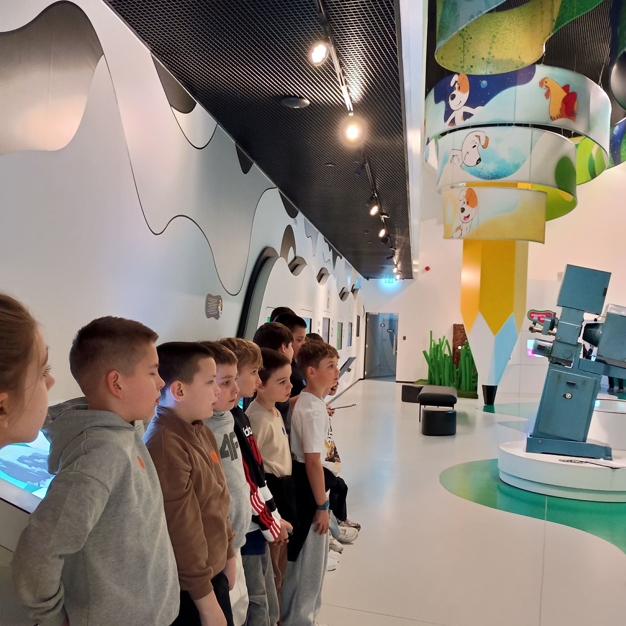 Podczas wizyty uczniowie mieli okazję zobaczyć, jak krok po kroku tworzy się film rysunkowy – od pomysłu i scenariusza, przez projektowanie postaci, aż po animację i udźwiękowienie. Dzieci poznały różne techniki animacji oraz dowiedziały się, jak ważna jest praca zespołowa w tworzeniu filmów.